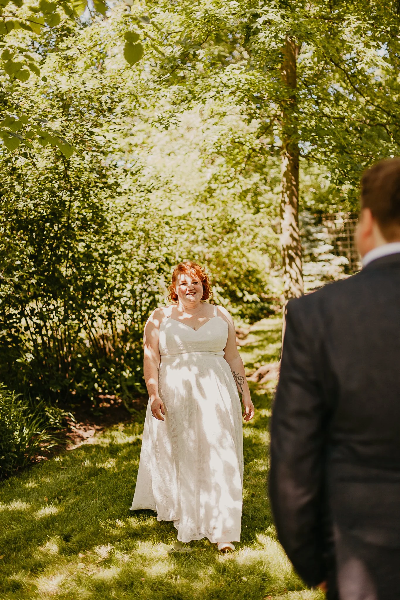 I instantly vibed with M+S when we grabbed a beer to chat about their wedding. They wanted it small, intimate, and laid back. I love when my couples make their wedding totally their own! Maggie’s parents turned their backyard into a beautiful woodsy backdrop and even the dog watched the ceremony. Then we headed to Washington Park to get some fun shots (fountain photos, anyone!?) and cheers to the newlyweds at Low Spark.